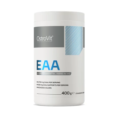Az esszenciális aminosavakból származó EAA szerves kémiai vegyületek (aminosavak) csoportja, amelyek a peptidek és fehérjék felépítésének alapvető „rejtvényei”. Sajnos ezeket szervezetünk önmagában nem képes szintetizálni (előállítani), ezért nagyon fontos, hogy megfelelő étrenddel vagy pótlás segítségével biztosítsuk őket. A készítmény tartalmazza a BCAA komplexet, azaz három hosszú láncú aminosavat: leucint, valint és izoleucint, valamint olyan vegyületeket, mint: lizin, treonin, fenilalanin, metionin, arginin, hisztidin és triptofán. Az OstroVit EAA komplex a fehérje aminosavaknak köszönhetően támogatja izomsejtjeink regenerációját és anabolikus folyamatait. A táplálékkiegészítő összetevői hozzájárulnak szervezetünk számos életfolyamatának támogatásához és közvetlenül részt vesznek abban, támogatják az immunrendszert,