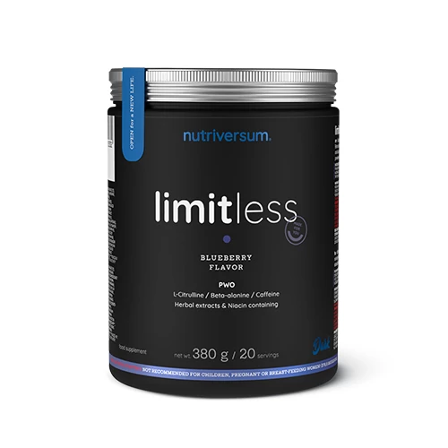 A Limitless PWO áfonya egy extrém erős edzés előtti formula, magas dózisú összetevőkkel, amelyek középpontjában a citrullin malát, AAKG komplex, béta-alanin, guarana kivonat, koffein, zöld tea kivonat és niacin állnak. Koffeintartalma adagonként 358 mg, amely hozzájárulhat a teljesítmény fokozásához. Mindemellett a termékben található niacin (B3-vitamin) részt vesz a normál energiatermelő anyagcsere- folyamatokban.*