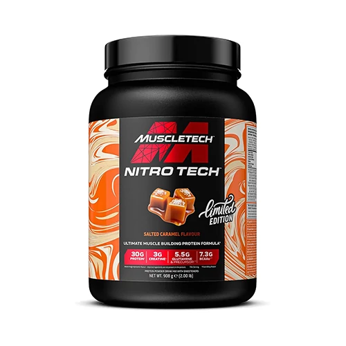 A NITRO-TECH fehérjéket tartalmaz, amelyek főleg tejsavóizolátumból származnak, amely a legtisztább fehérjeforrás. Ezenkívül 3 g kreatint tartalmaz, amely támogatja az izomtömeg növekedését és növeli az erőt. Különböző tanulmányok kimutatták, hogy a rendszeres használat körülbelül 15 kg-os javuláshoz vezet a fekvenyomásban, és 2,3 kg-os izomtömeg növekedéshez vezet.
