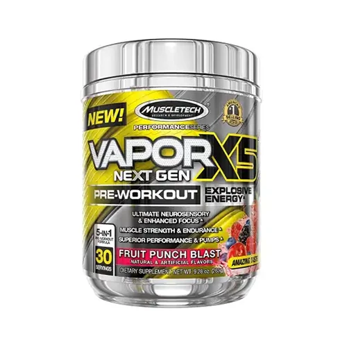 MuscleTech researchers reinvented the pre-workout category again. VaporX5 Next Gen is the most complete pre-workout product available. It delivers unparalleled energy, extreme muscle pumps and performance, a surreal sensory experience plus scientifically validated musclebuilding power! This intense formula has everything you could possibly want in a pre-workout and nothing you don’t – zero underdosed key ingredients or fillers. VaporX5 Next Gen delivers uncompromising potency and power for the best workouts of your life!